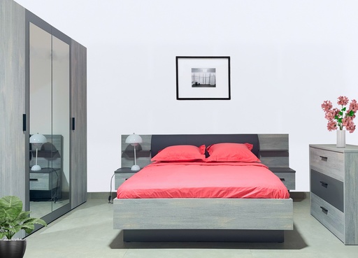 COMMODE DBLE TIRROIR + LIT 160X200 + 2 CHEVETS-ARMOIRE 2PORTES COULISSANTES. SIRIUSCROWN