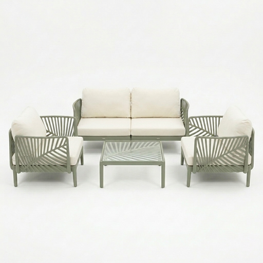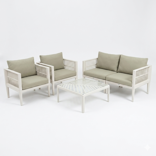Composé d’un canapé, d’une chaise longue et d’une table avec plateau en verre sécurisé, il est idéal pour des moments de relaxation stylés.